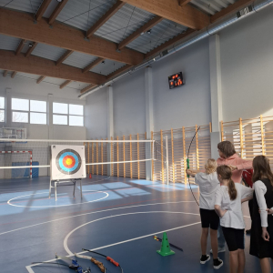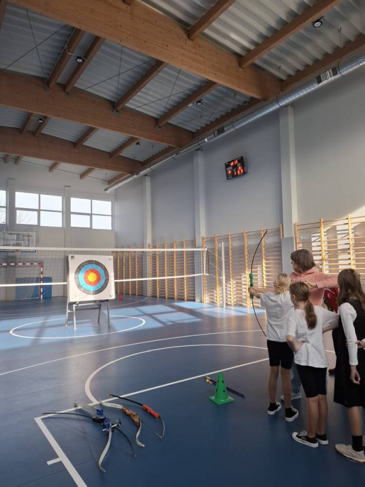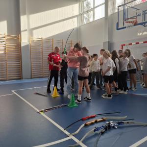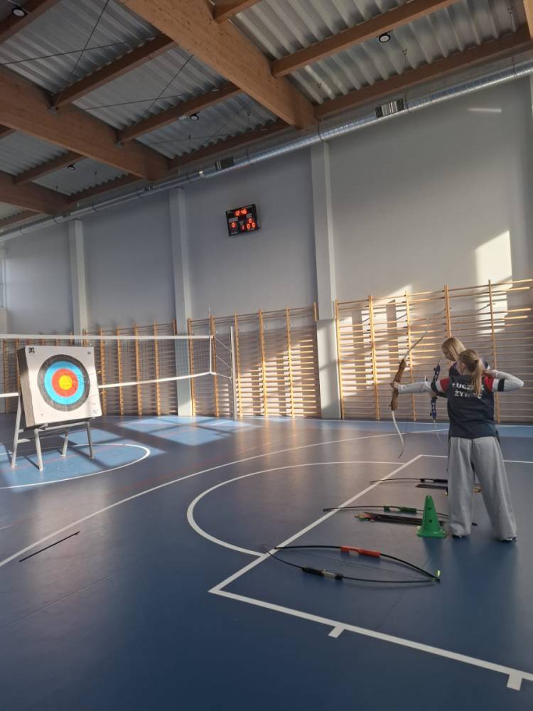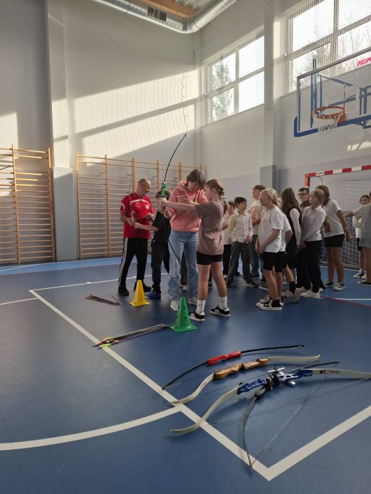Na zajęciach odbył się pokaz strzelania z łuku i trening dla uczniów. Taki trening odbędzie się jeszcze raz w dniu 26 listopada dla klas IV, VII, VIII. Zarówno Julia jak i Pan trener zachęcali uczniów do podjęcia wyzwania i próby strzelania. Może ktoś pójdzie w ślady Julii i jej brata Konrada.